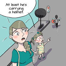 You already have a comic situation, but try to have other details such as the bag being broken for example. Regarding this situation of the bag and the cigar; To make it more evident that the cigarette is falling, lowering your hand from La Bolsa as much as possible helps you so that La Bolsa and the cigarette do not fight in communication and thus are not distracted from each other. If you want to focus your attention on the cigarette, try to leave that area free so that nothing competes with it.