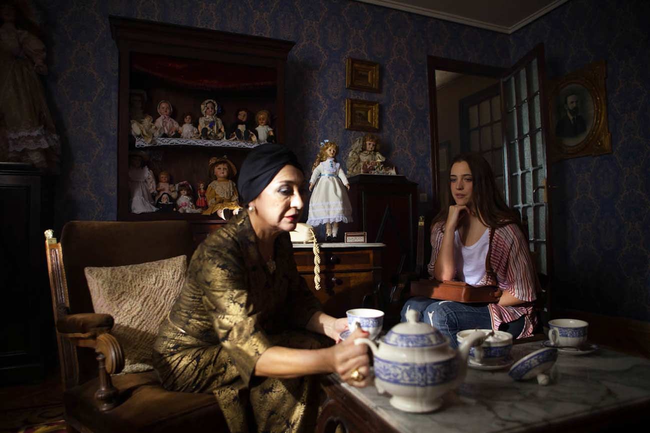 Diamantina (Luisa Gavasa) le sirve el té a Ana (Ona Casamiquelas) en el salón.