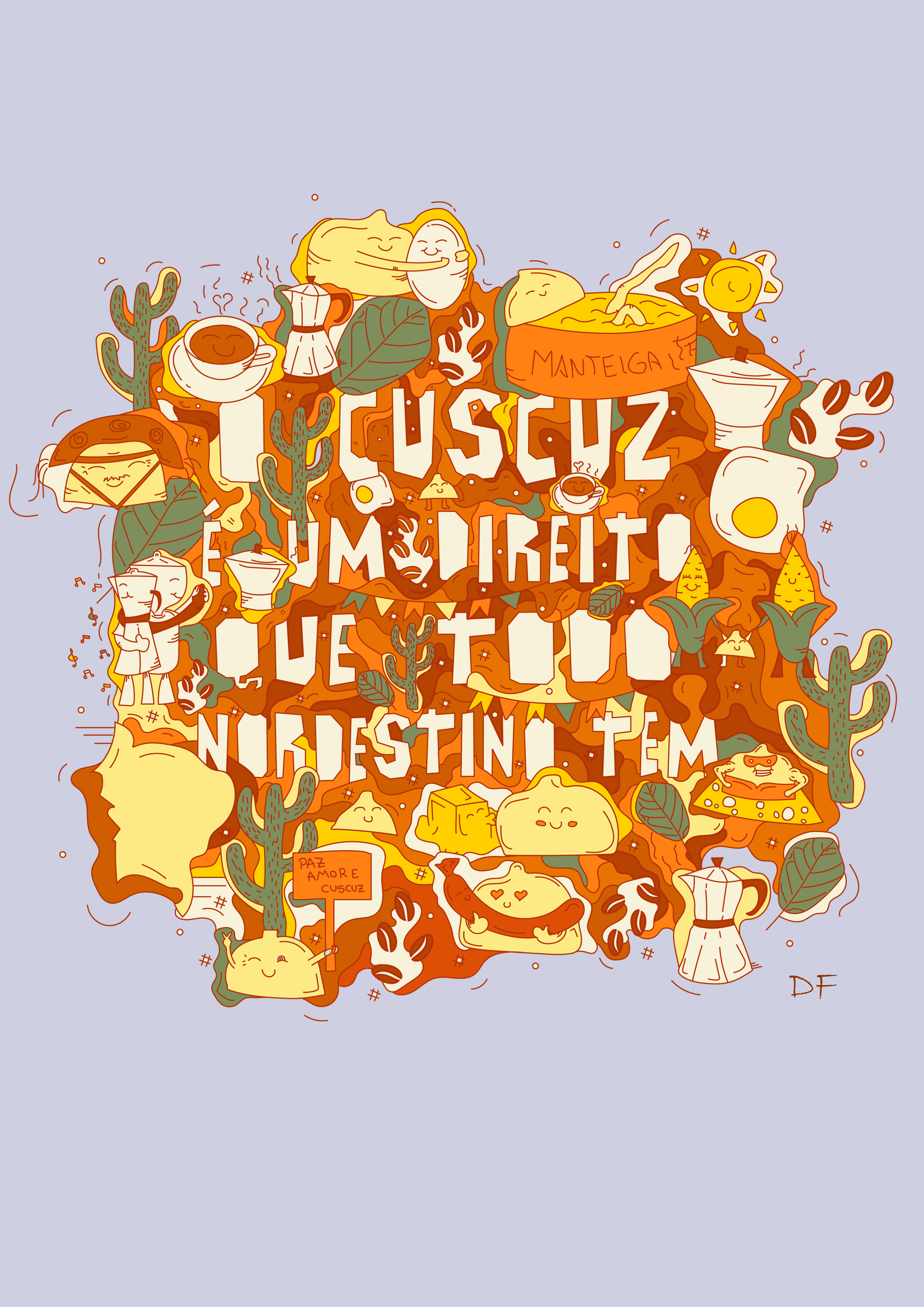 @danielamflorencio your final project was amazing! The elements that you generated in your brainstorming are super fun, ingredients full of love for each other. You managed to give a very good regional / cultural touch. The colors are warm to represent the theme, but you broke the palette a little using green and it brought a great contrast. Congratulations, I really liked it :) And by the way, I really like coffee with couscous. I'm glad you liked the didactics of the course. Then give a review there if you can;)