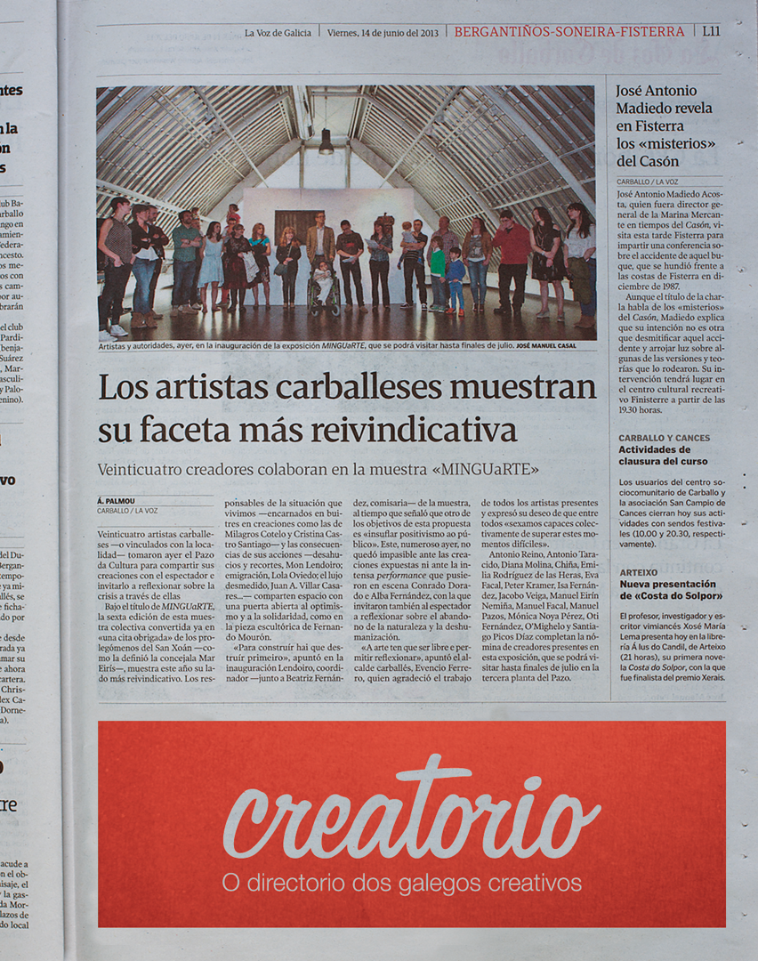Creación de un proyecto cuyo principal objetivo es la visibilización de los creadores gallegos. Diseño de logotipo, web, app, perfiles en las redes sociales, merchandising, street marketing, marketing directo, cartelería, anuncios para prensa... A continuación, algunas imágenes.
