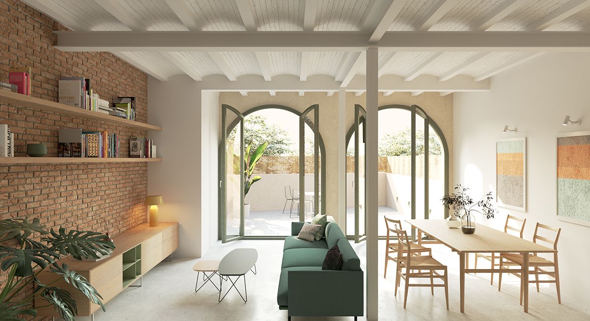 La intervención integral reorganiza por completo el interior del edificio para recuperar su exterior, mejorando la transición de la calle a la vivienda con un vestíbulo abierto, potenciando la conexión con las terrazas posteriores y, finalmente, facilitando el acceso a la terraza en cubierta haciendo llegar el ascensor. De esta manera, el límite de la propia vivienda se difumina y permite al usuario apropiarse de unas zonas comunes que invitan al encuentro.
