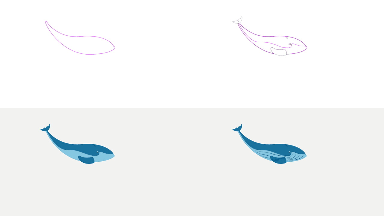 Finally, we had an intuition that was using shapes and null controllers for the whale animation.