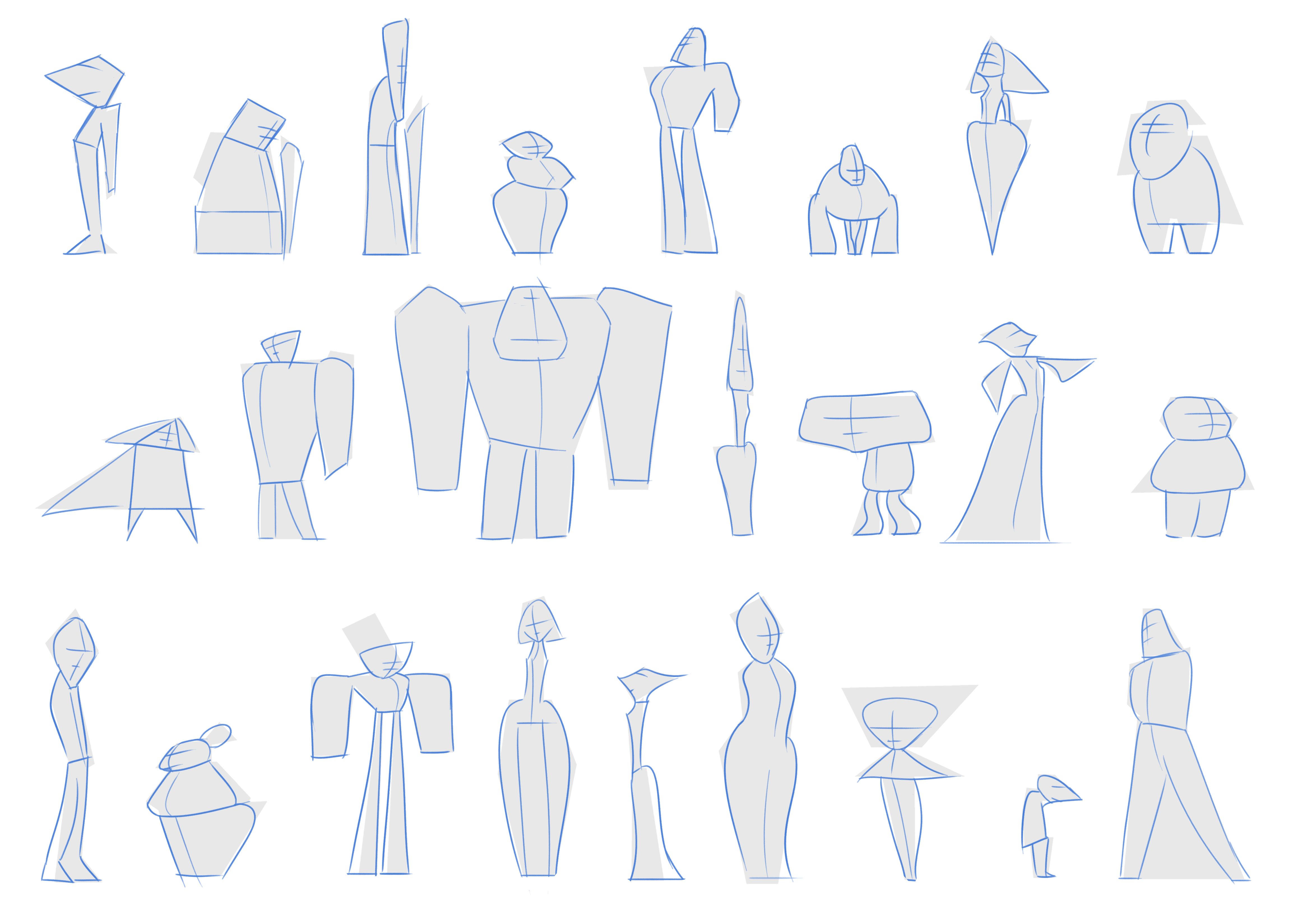 Patricio Betteo'nun kursunda önerdiği egzersizleri takip ederek başladım; kesiklerle şekilleri keşfedip ardından çılgın oranlara sahip vücutlar çizdim. Bu sayede anatomiyi iyice kavrayıp her karakterin özelliklerini ve rolünü vurgulayabildim. Bu sayede, oldukça kişiliğe sahip, çeşitli bir kadroya sahip oldum.