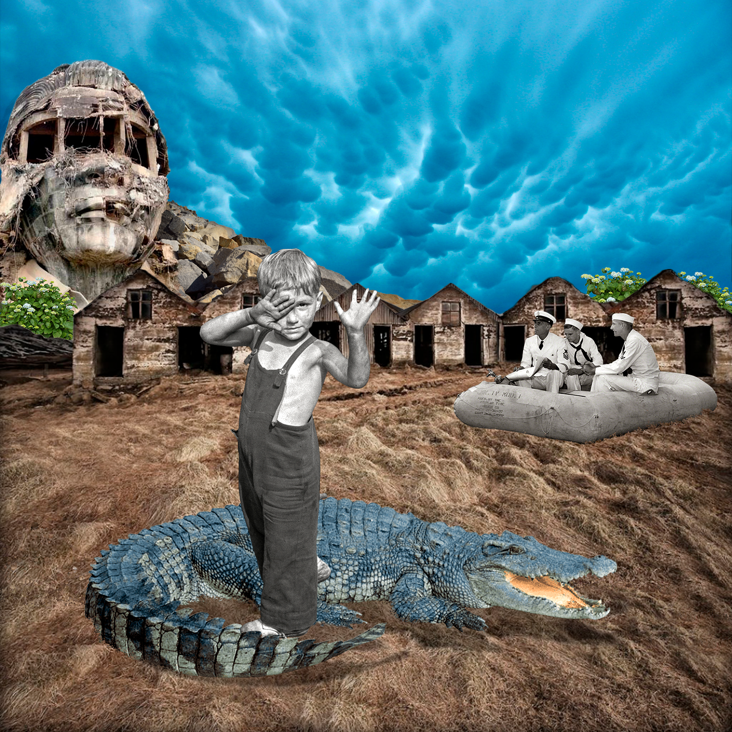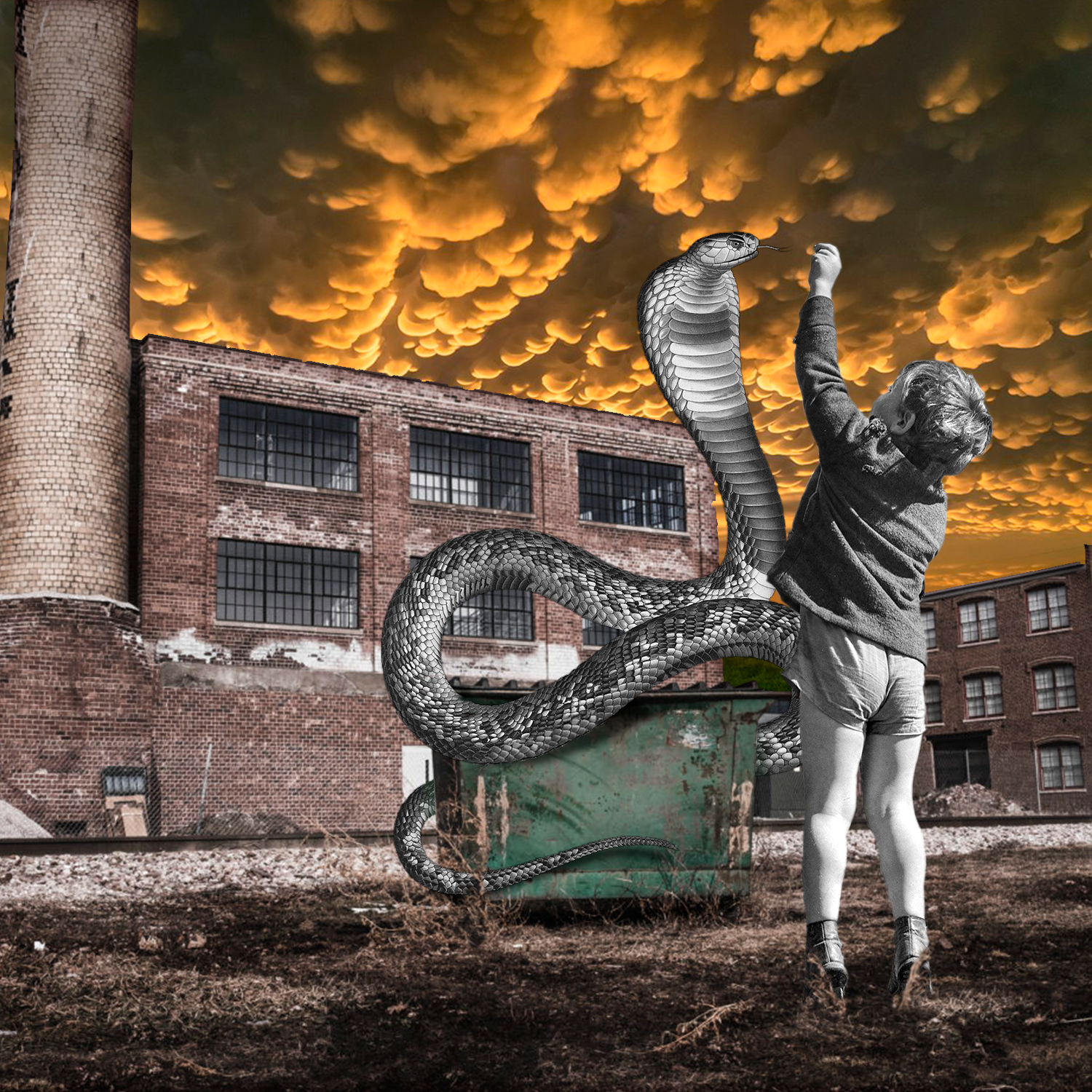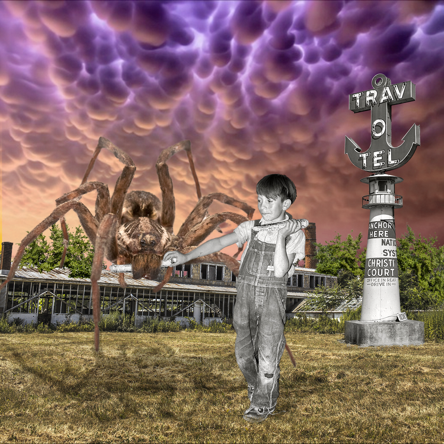 Me apetecía hacer una serie de carteles con varios denominadores comunes pero explorando las composisiones y colores. Quería mantener...lugares abandonados, animal peligroso, niño, cielo especial que se llama Mammatus.